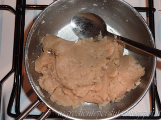 In una pentola mettere l’acqua, il burro lo zucchero, e portare ad ebollizione, poi fuori dal fuoco unire la farina e la cannella tutto in una volta, mescolare sino a formare l’impasto e lasciatelo raffreddare.